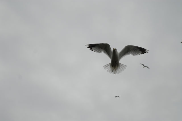 Myggor slår man ihjäl. Flugor och knott med. Men vad gör man med måsar som hoovrar strax över huvudet? Nyligen hade jag ett gäng glupska fåglar efter mig. Jag gick bort hundra meter, slängde ut bröd över vattnet, bort från mig. Flera bitar blev det, och ett nytt gäng måsar dök upp, det var väl ett femtital som dessutom började slåss med varann. När jag gick tillbaka var det med massor av måsskrin ringande i öronen, uppblandat med något som antagligen var kraftuttryck. De kom från en man som sålde korv i närheten av där jag nyss hade lämpat av 50 brödtörstande slagsmålsmåsar. Han gillade inte mitt initiativ och ville ge mig stryk. Jag gillade inte måsarna. Dom gillade brödet och var kvar vid vattnet för att kanske få mer. Det gjorde inte mig något, dom får gärna vara i ett vattenbryn, en bit bort. Men jag gjorde en liten omväg när vi gick hem, och jag köpte ingen korv heller fast jag var lite hungrig. Jag köper aldrig korv av gubbar med elaka röster som hotar med stryk.