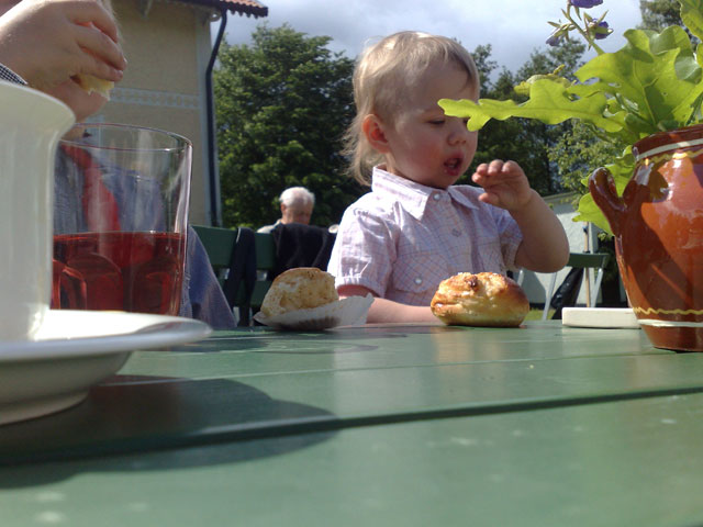 Och att få god grillkorv med jordgubbar, glass och grädde och ta godis från en stor skål.