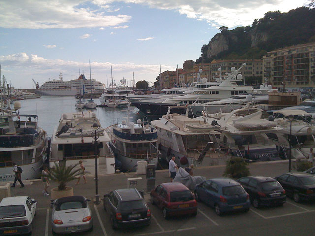 Lyxbåt vid lyxbåt vid lyxbåt. Här ligger pengarna i sjön. Men det är egentligen inte mycket att skryta med, eftersom alla är ungefär lika stora och ungefär lika fyllda med platt-TV, barskåp och övernattningshytter. Här och där går anställd personal runt och putsar tamparna, i väntan på att ägare och vänner ska dyka upp. Kanske idag, kanske nästa vecka, eller nästa månad. Och det som slår mig är att även om man ägde en av båtarna, och hade parkerat sin Porsche vid kajen, så finns det alltid någon som har en större båt lite längre bort, där de parkerar sin Ferrari.