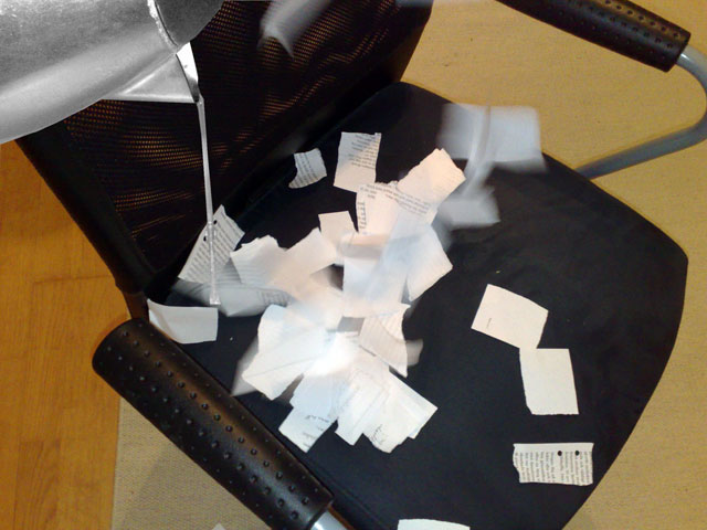 Och det väsentliga var att han skulle gå in till sin chef och smula sönder papperet på hans stol, hälla ut kaffe över det hela, gnida in ordentligt och sen be chefen ringa upp mig igen.