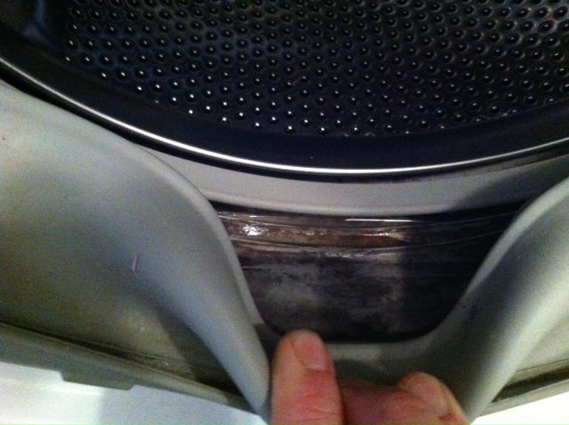 Hur tvättar man en tvättmaskin? Det räcker inte med att ta bort ludden, det finns andra problem. Där, inuti gummilisten, är det skitigt och där biter varken yes eller via. Och har man otur så kommer den vita tvätten ut med svarta ränder som den får när den dras genom luckan. Hushållspapper fungerar sådär kan jag konstatera. Det blir alldeles svart men utan att det blir helt rent i gummilisten.